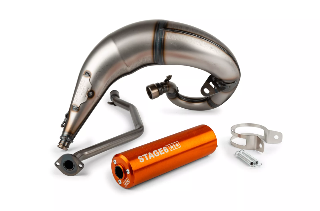 Stage6 Streetrace High-Mount on erityisesti 50cc–77cc 2-tahtisiin AM6-moottoreihin suunniteltu pakoputkisto, optimoitu toimimaan täydellisesti Stage6 Streetrace -valurautasylintereiden kanssa.